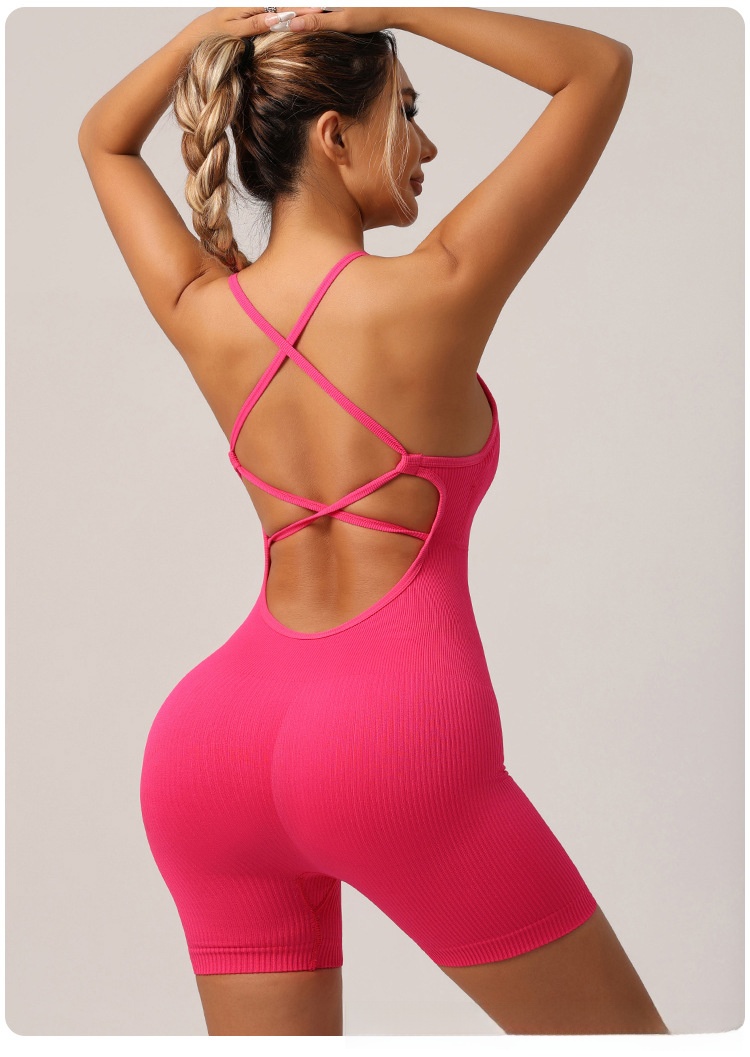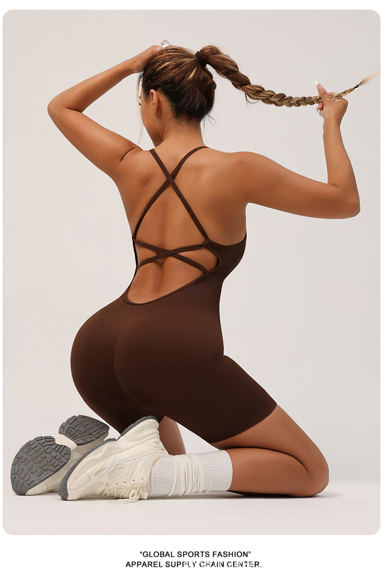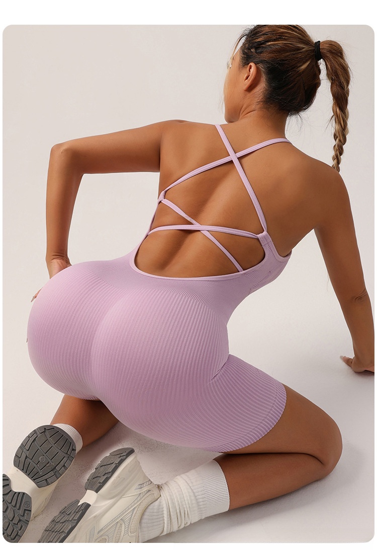 The Lyrix Backless Cross-Strap Yoga Romper is designed to enhance your curves while delivering unmatched comfort and performance. Featuring an elegant open-back crisscross design and a body-sculpting seamless fit, this romper blends style and function effortlessly.