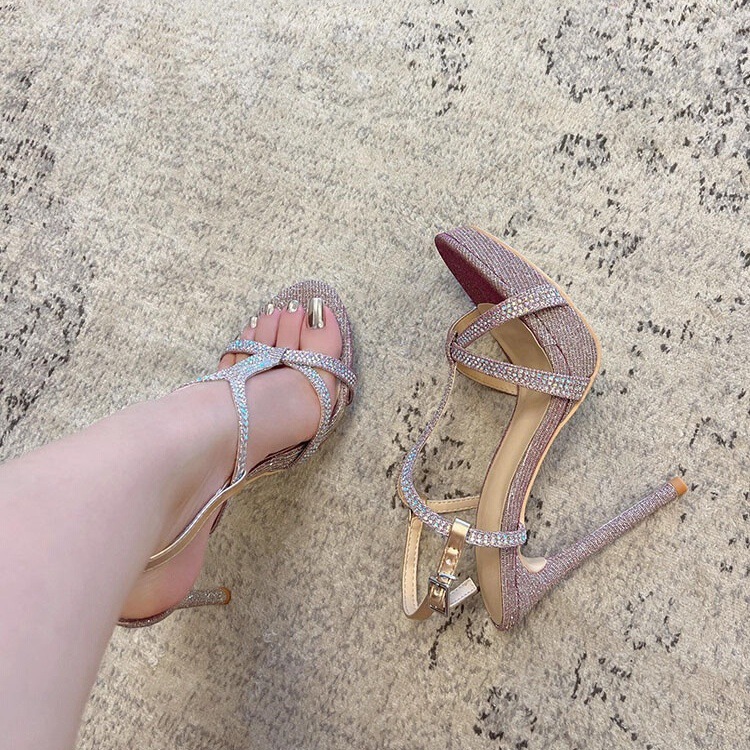 Crystal shimmer strap detailing