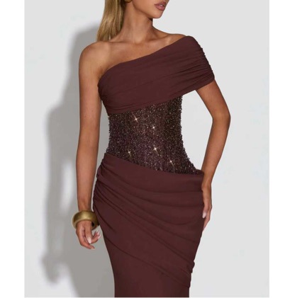 Structured one shoulder neckline