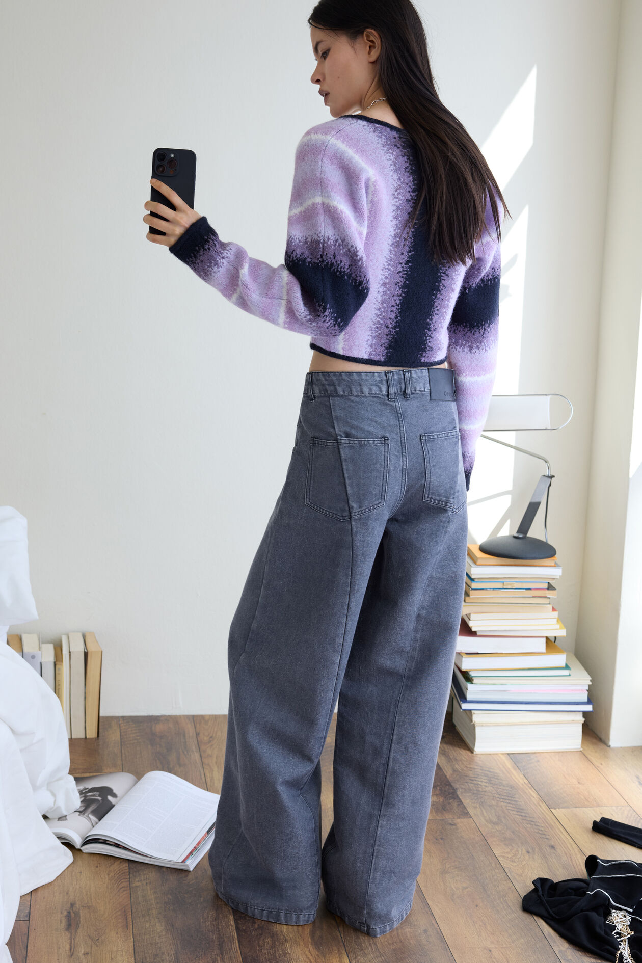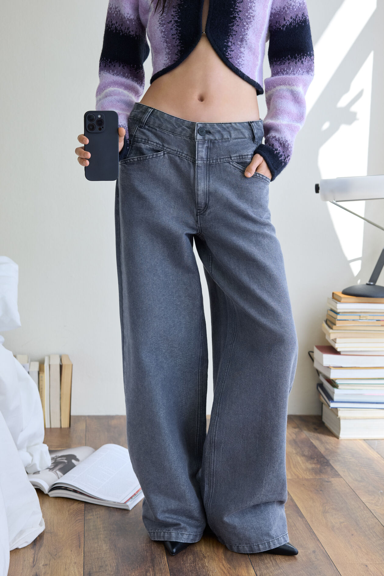 The Layrix Silver Wide Leg Tailored Denim blends classic denim durability with a refined wide leg silhouette. Designed with a high rise waist and structured tailoring, these pants elongate the legs while delivering a clean minimalist aesthetic.