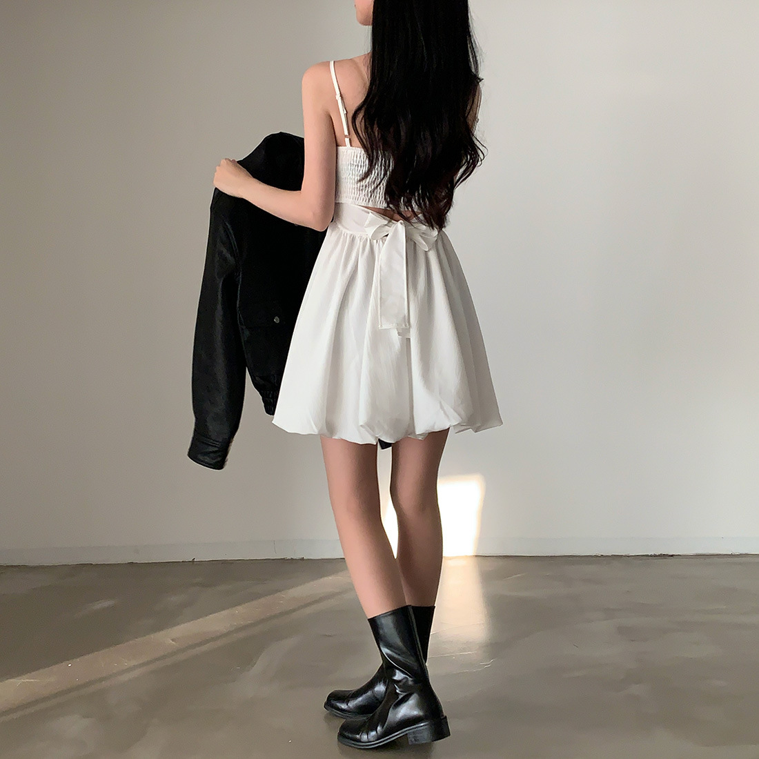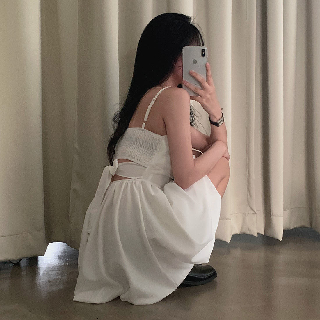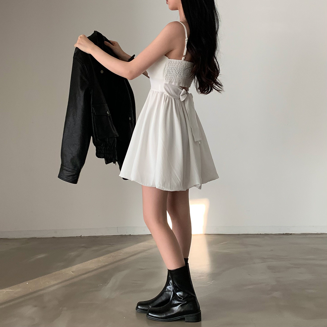 Pair with minimal heels and a small shoulder bag for a timeless feminine look, or dress it down with flats for a soft daytime aesthetic.