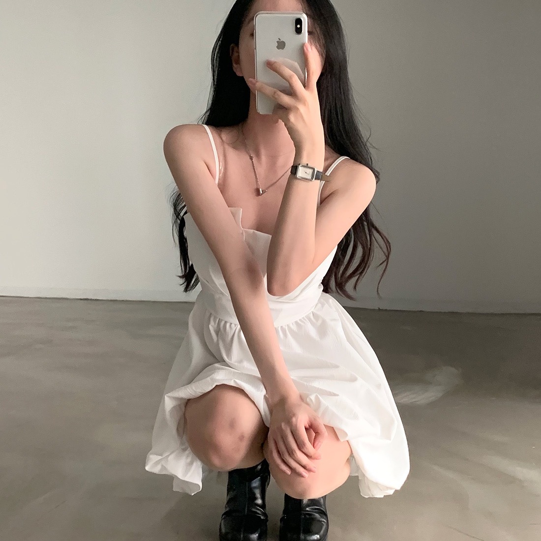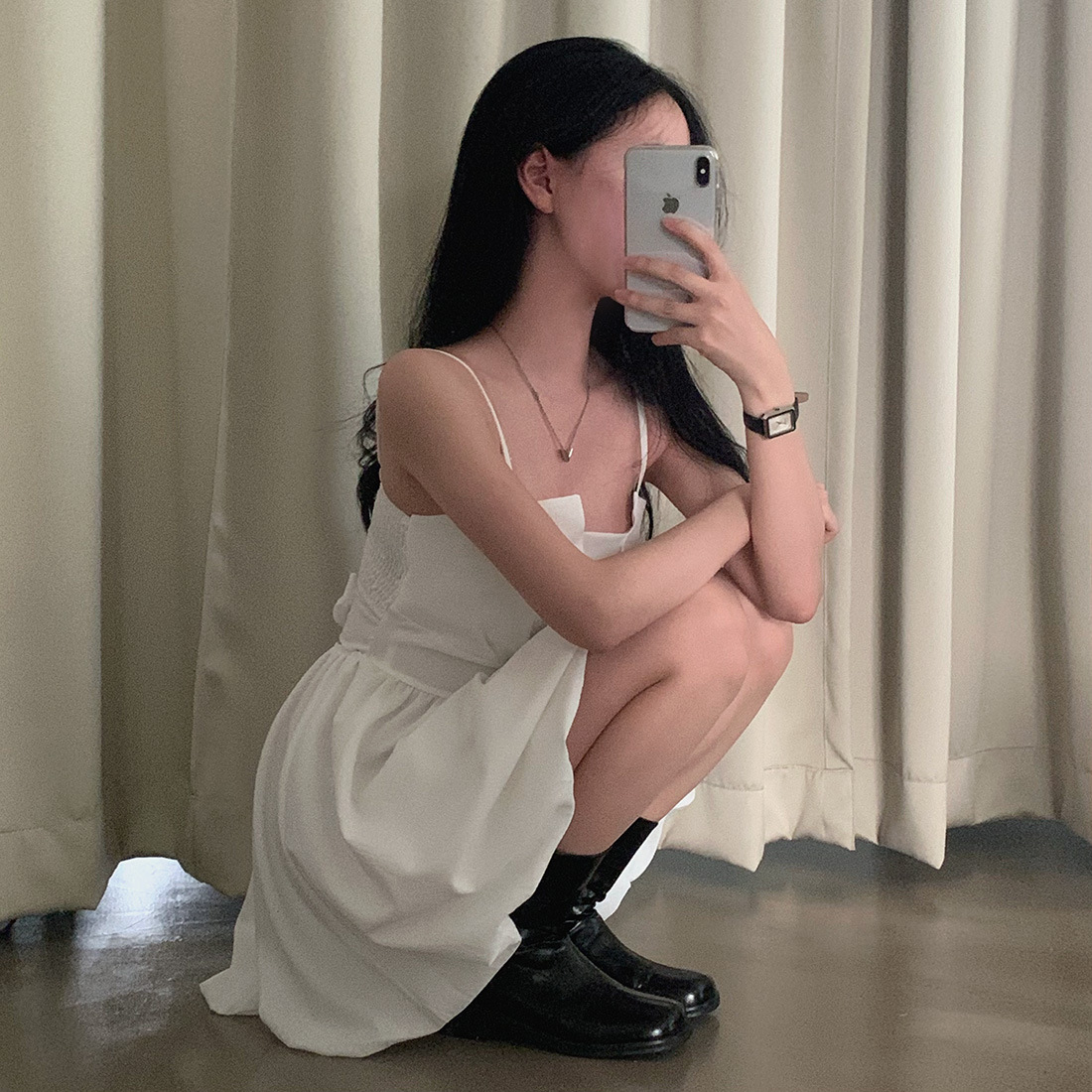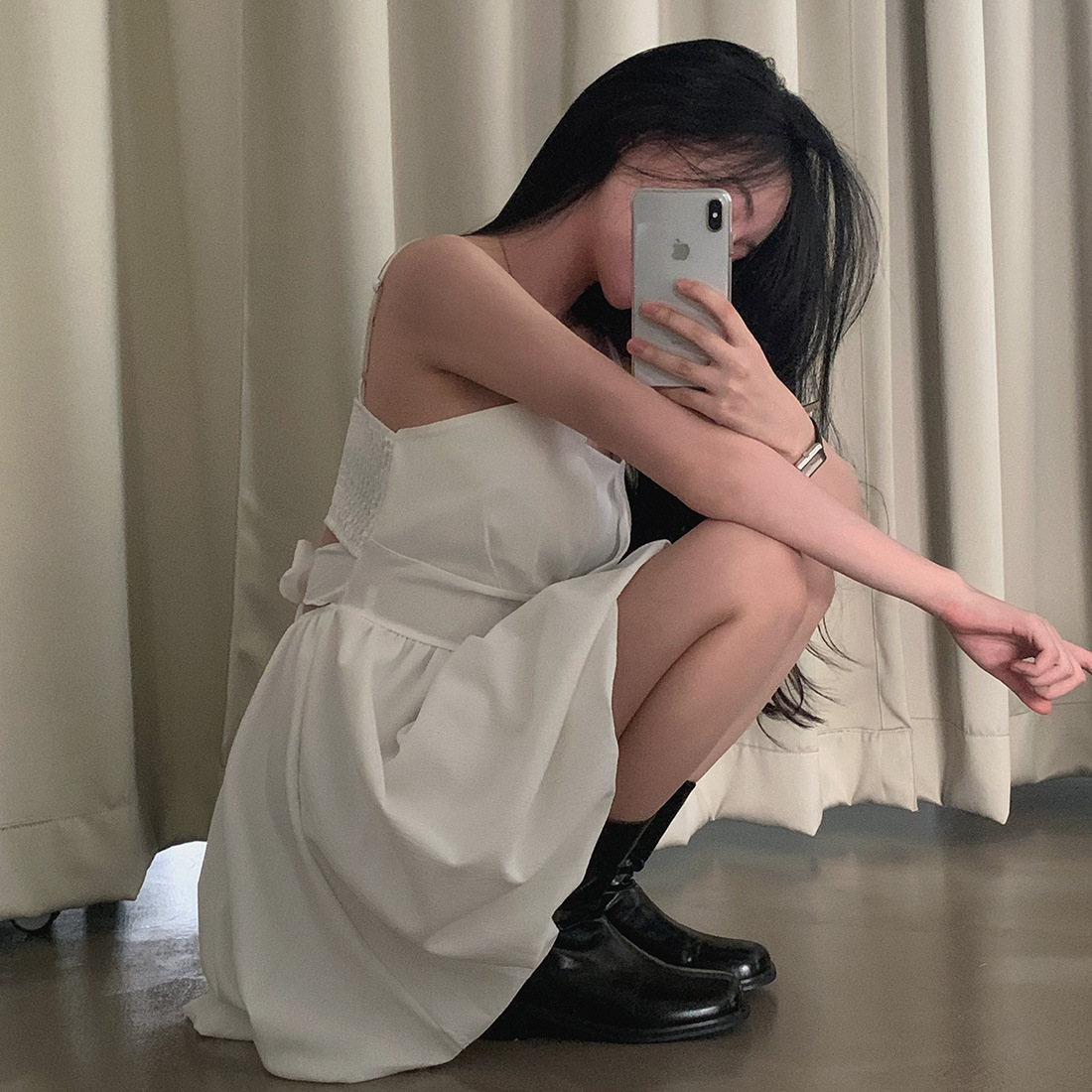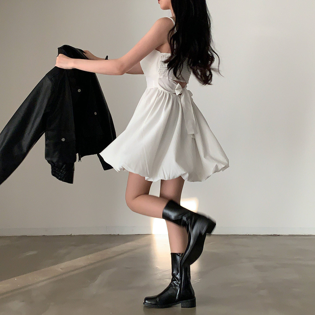 Pair with minimal heels and a small shoulder bag for a timeless feminine look, or dress it down with flats for a soft daytime aesthetic.