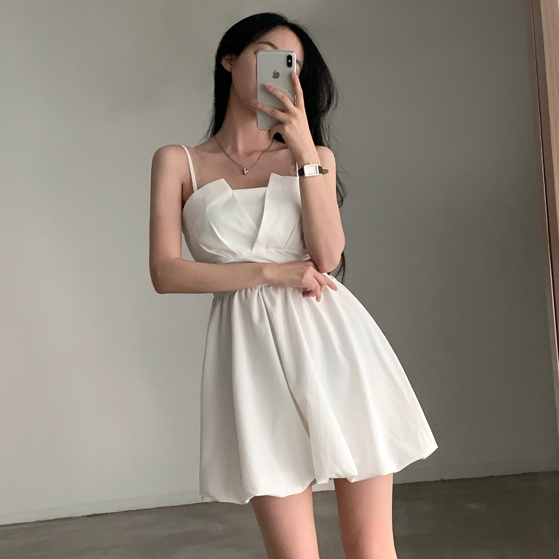 Graceful, feminine, and effortlessly chic, the Layrix Soft Muse Mini Dress is designed to make a statement with simplicity. Featuring delicate shoulder straps and a flattering structured bodice, this dress flows into a soft, airy skirt that moves beautifully with every step.